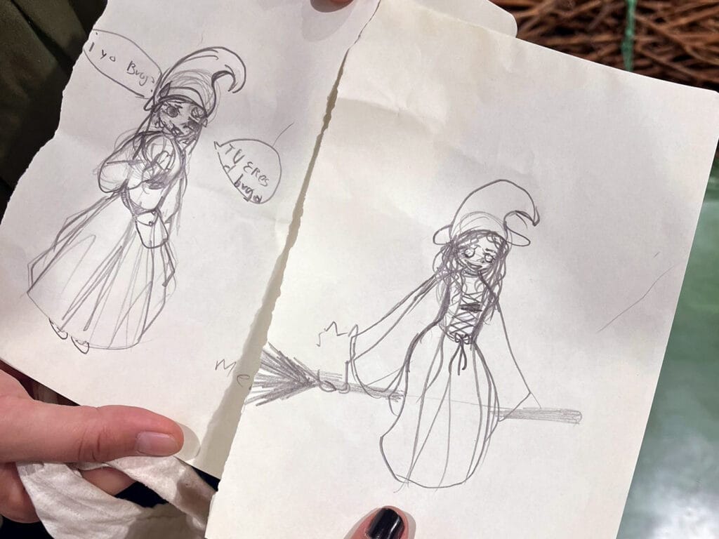 Como colofón a la jornada, uno de los alumnos del CEIP Madre de Dios nos sorprendió con estos preciosos dibujos inspirados en las sorginak y en la historia que representamos. Gestos como este nos recuerdan por qué merece la pena seguir compartiendo la memoria y las lecciones que nos deja la historia con las nuevas generaciones.